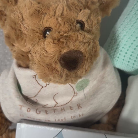A super welcome to parenthood, this thoughtfully curated new baby gift hamper. Inside you'll find everyday essentials—soft clothing, a cosy baby blanket, and adorable bear companion. We have chosen to include "Mum to Mum Pass It On" a practical guide brimming with real parenting tips and tricks from experienced parents. This baby hamper is perfect for maternity or paternity leave. This gift also works beautifully for colleagues, friends, and family celebrating a new arrival. It's the kind of present, whose contents, new parents actually reach for during those early weeks.